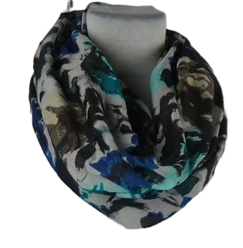 Dámska čierno-zeleno-modrá kvetovaná golierová šál