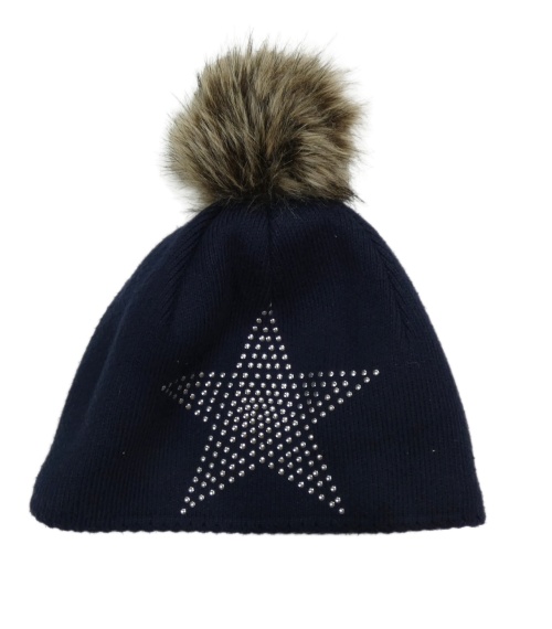 Dámský tmavomodrý pletený kulich s hvězdou z cvočků