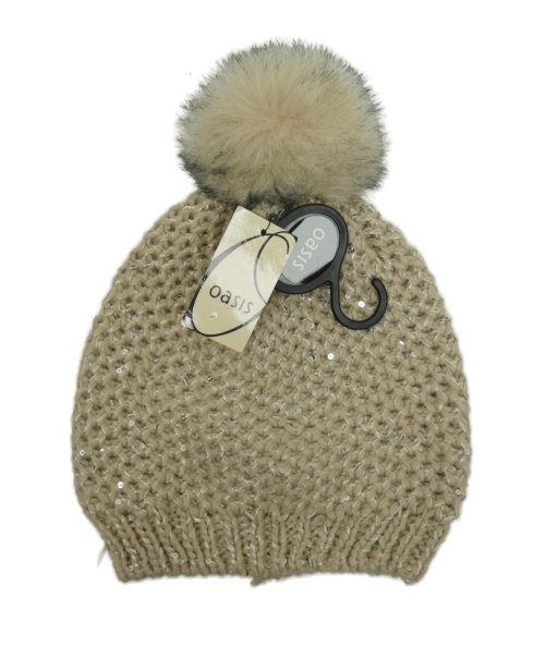 Nové - Dámska béžová trblietavá čapica s brmbolcom Oasis