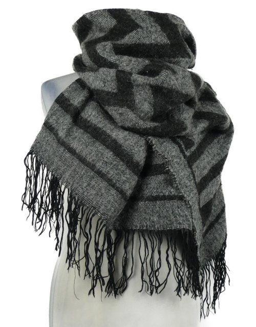 Dámska sivo-čierna vzorovaná šál s strapcemi