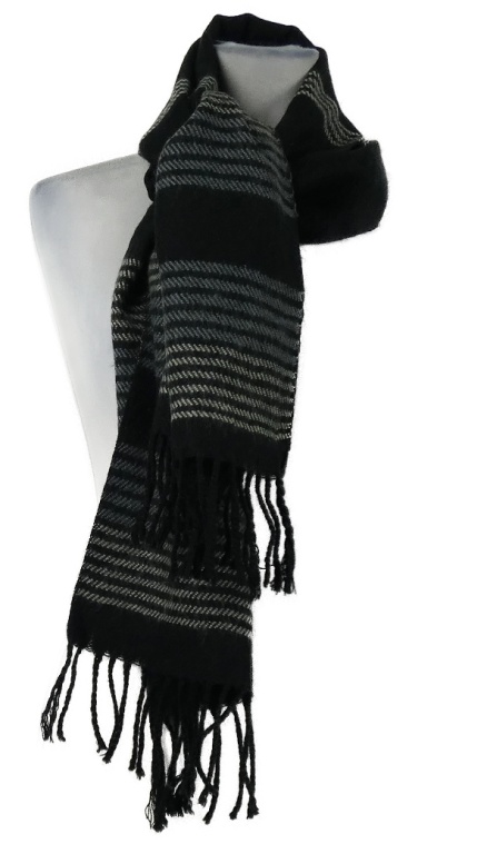 Dámska čierna šál s prúžkami a strapcemi