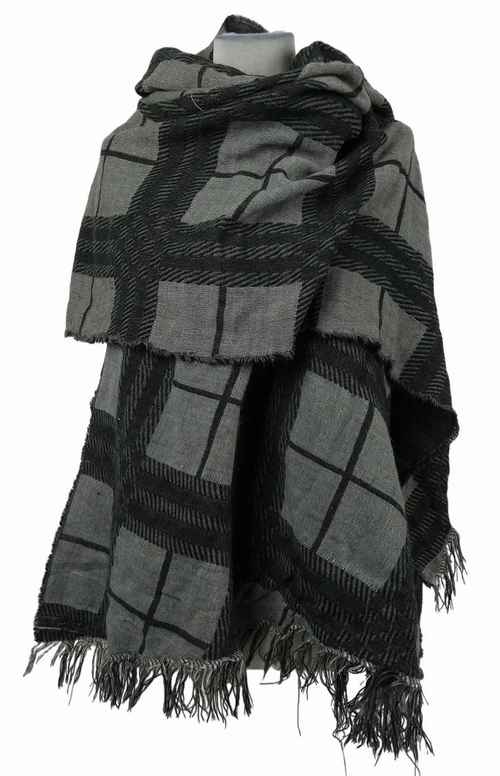 Dámský černo-šedý kostkovaný pléd s strapcemi
