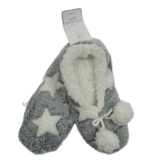 • Nové - Dámske sivo-biele hviezdičkované chlpaté papučky Dunnes vel. 35-38