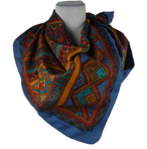 Dámská modro-oranžovo-červený vzorovaný šátek