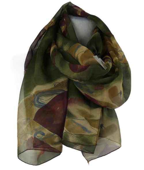 • Nové - Dámský khaki-béžovo-vínový vzorovaný šifonový šátek