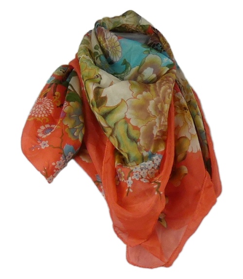 Dámský bílo-červený šifonový šátek s kvetmi