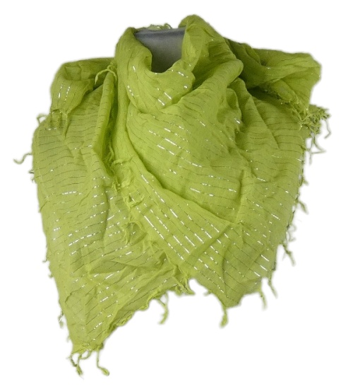 Dámský limetkový proužkovaný šátek s strapcemi