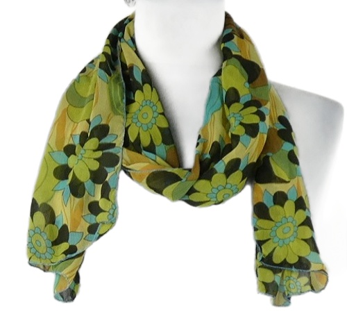 Dámska limetkovo-hnedo-modrá kvetovaná šifónová šál