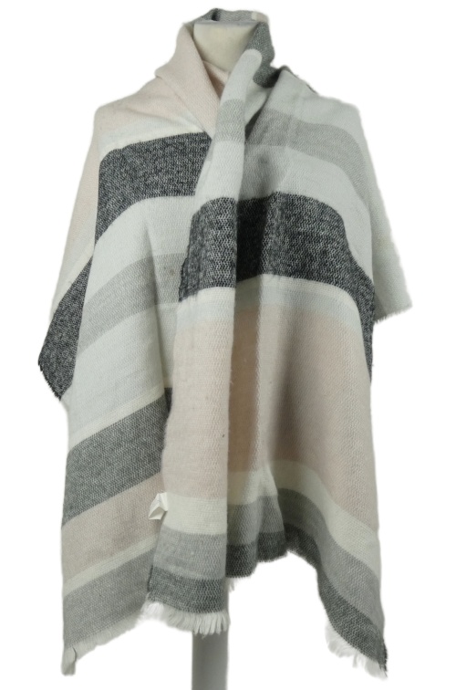 Dámský šedo-bílo-růžový pruhovaný pletený pléd Primark