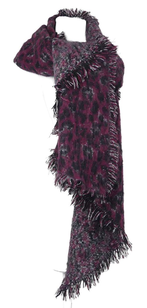 • Dámska ružovo-sivá vzorovaná tepláková pletená šál s strapcemi