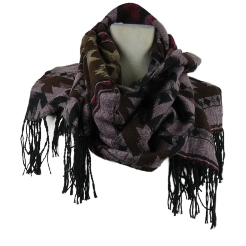 Dámska ružovo-béžovo-hnedá vzorovaná šál s strapcemi
