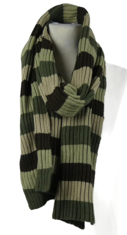 Dámska béžovo-kaki-hnedá pruhovaná šál
