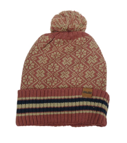 Dámska ružovo-modrá vzorovaná čapica s brmbolcom s pruhmi DHJAA