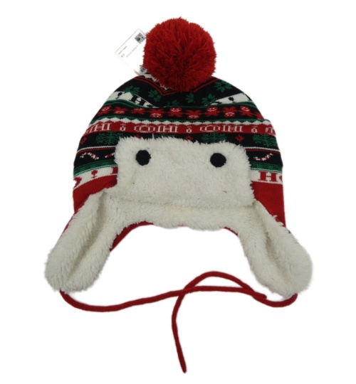 Dámska červeno-čierno-zelená vzorovaná čapica s brmbolcom C&A
