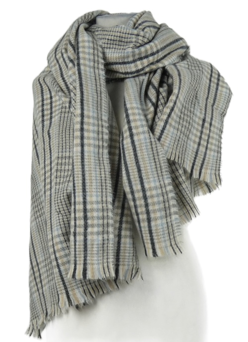 Dámska tmavomodro-béžovo-biela kockovaná šál