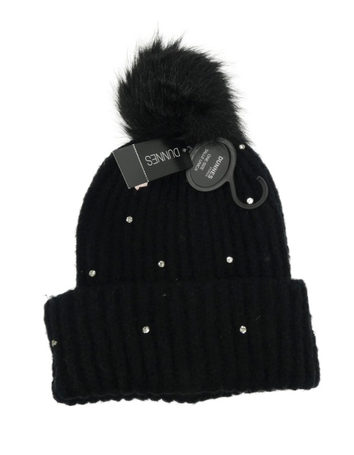 Nové - Dámska čierna čapica s kamienkami a brmbolcom Dunnes