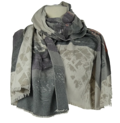 Dámska béžovo-sivo-ružová vzorovaná šál
