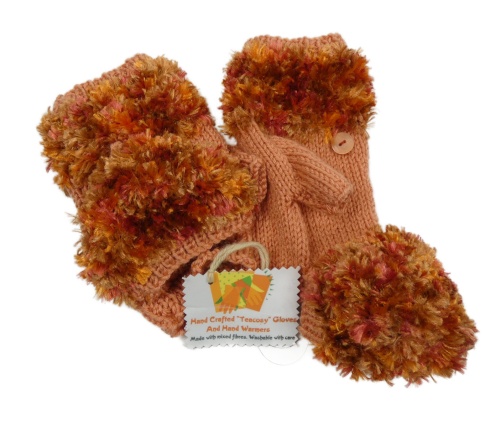 Nové - Dámské broskvové pleteno/chlupaté bezprstové rukavice s klopou