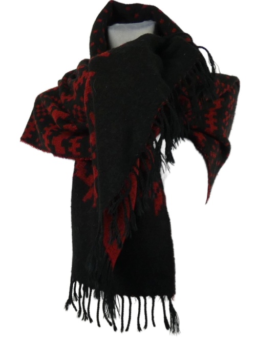 Dámska čierno-červená vzorovaná šál s strapcemi