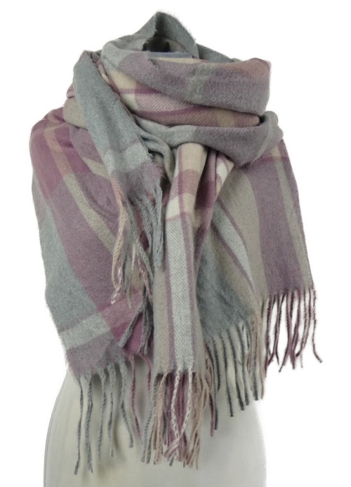 Dámska sivo-ružová kockovaná maxi šál s strapcemi