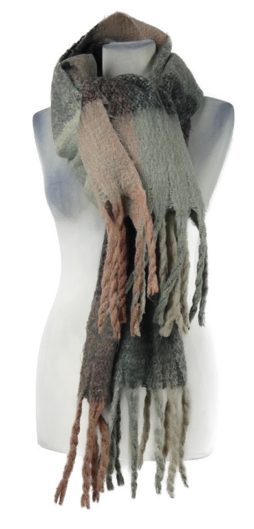 Dámsky sivo-svetloružová kockovaná vlnená šál s strapcemi