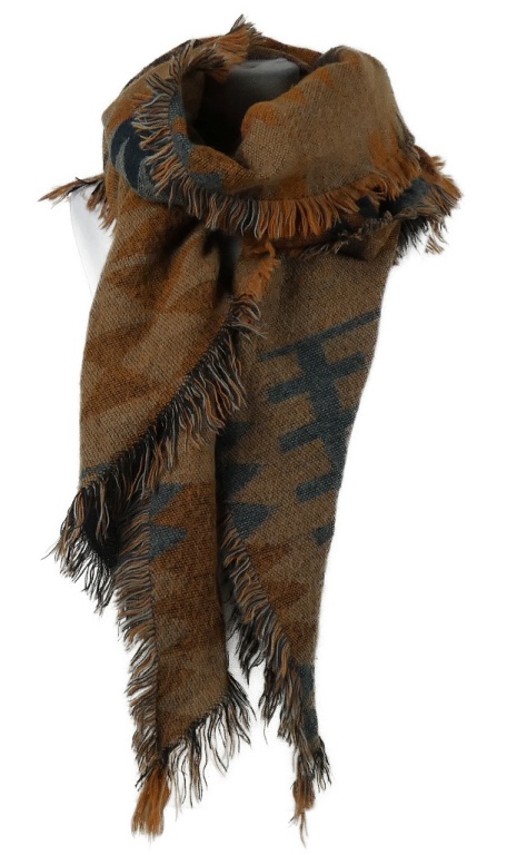 Dámska skořovo-tmavomodrá vzorovaná pletená tepláková šál s strapcemi