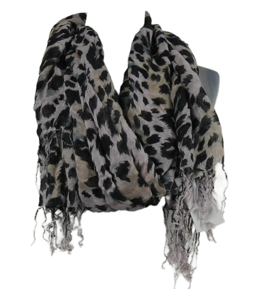 Nové - Dámska čierno-ružová vzorovaná šál s strapcemi