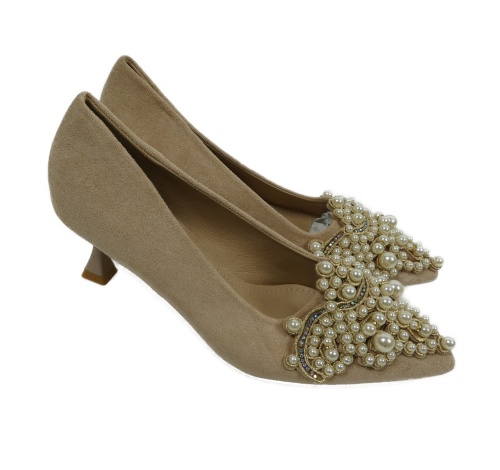 • Nové - Dámské pudrové semišové lodičky na podpatku s perličkami vel. 39