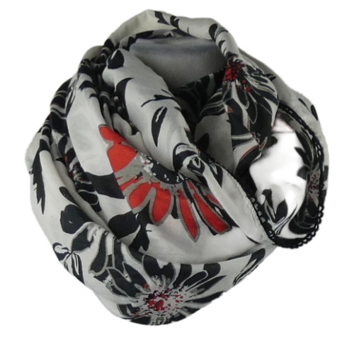 Dámska bielo-čierno-červená kvetovaná golierová šál
