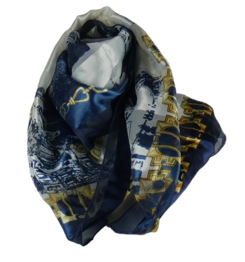 Dámský tmavomodro-bílý vzorovaný šifonový šátek s potlačou
