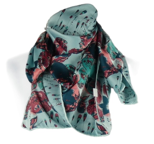 Dámský světlemodro-růžový vzorovaný saténový šátek