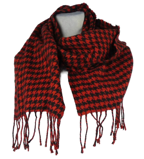Dámska červeno-čierna vzorovaná šál s strapcemi