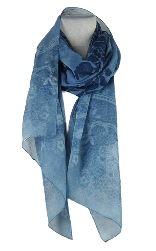 Dámska modro-tmavomodrá vzorovaná šál