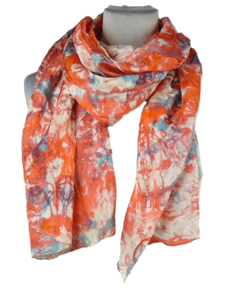 Dámský oranžovo-bílo-modrý batikovaný šátek