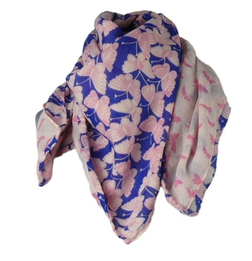 Dámský modrý šátek s motýly