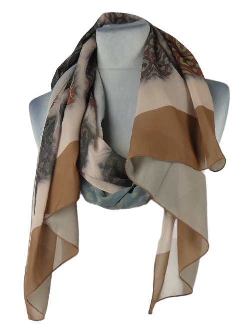 • Dámský světlerůžovo-béžovo-černý vzorovaný šifonový šátek