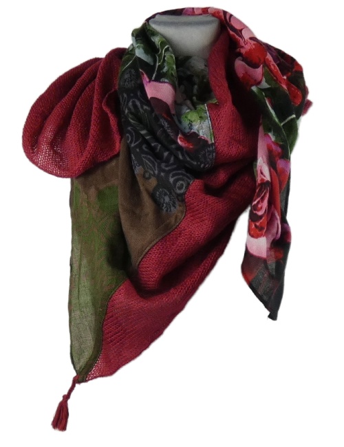 Dámský červeno-zelený květovaný šátek