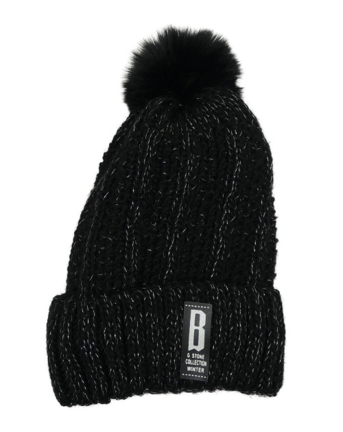 Dámska čierno-strieborná pletená čapica s brmbolcom