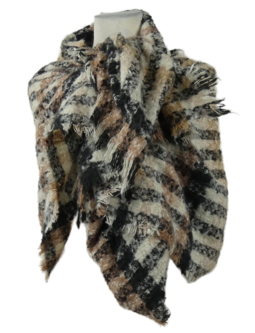 Dámska čierno-béžovo-ružová kockovaná tepláková šál