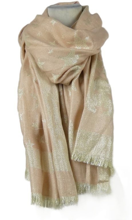 Dámska ružovo-zlatá hviezdičkovaná šál