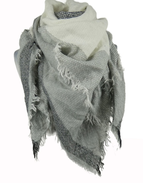 Dámska sivo-biela vzorovaná pletená šál
