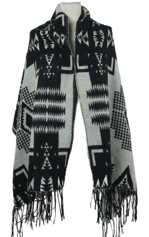 Dámska sivo-čierna vzorovaná šál s strapcemi