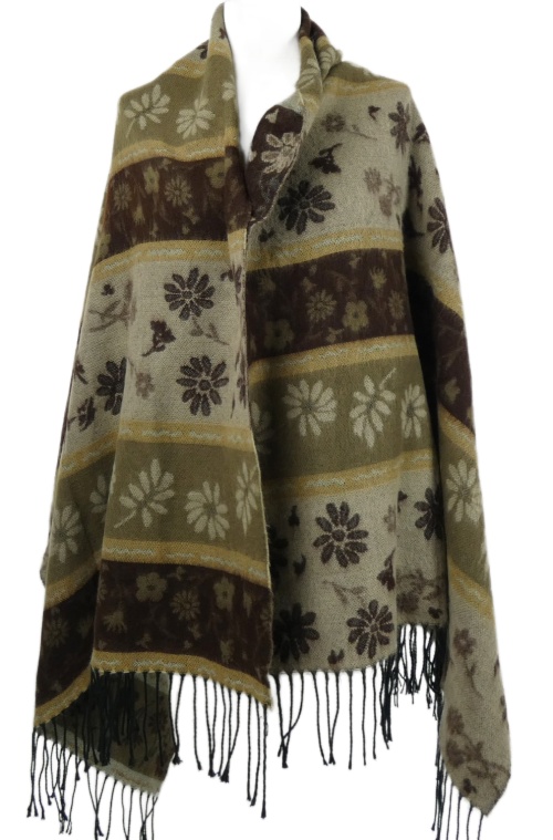 Dámska béžovo-hnedá vzorovaná šál s strapcemi