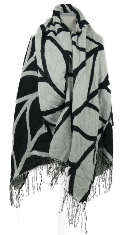 Dámský šedo-černý vzorovaný svetrový pléd s strapcemi