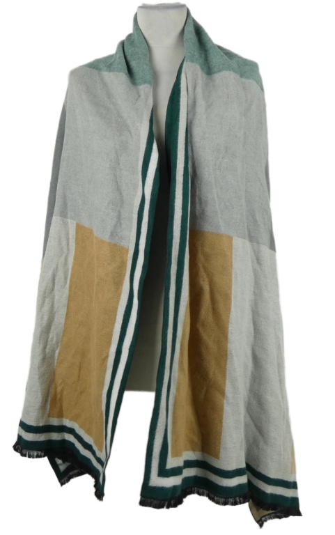 Dásmká zeleno-sivo-béžová kockovaná šál