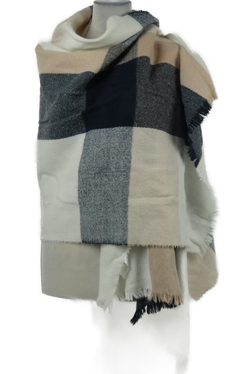 • Dámska pudrovo-bielo-tmavomodrá kockovaná maxi rozstrapkané á šál Primark