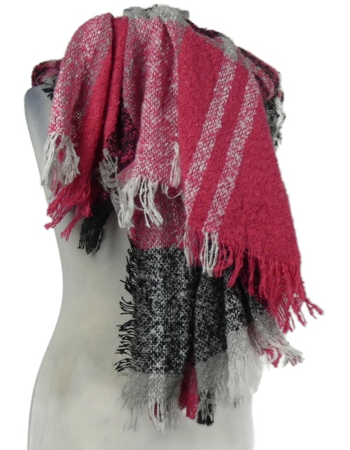 Dámska ružovo-čierna kockovaná tepláková šál