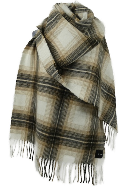 Dámska bielo-béžovo-čierna kockovaná maxi šál s strapcemi Opus