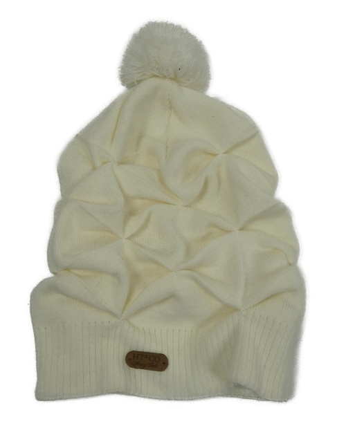 Dámska smotanová pletená nařasená čapica s brmbolcom