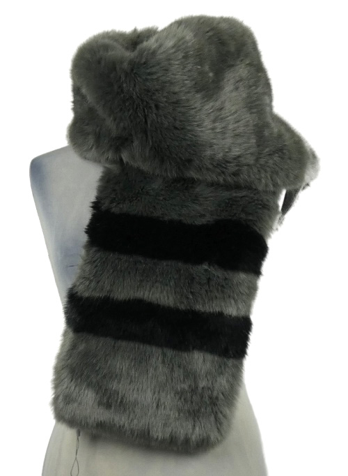 Dámska sivá kožušinová šál s čiernymi pruhmi Savida